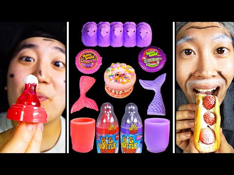 ASMR PURPLE PINK DESSERTS HUBBA BUBBA, EDIBLE BOTTLE, TIKTOK JELLY EATING SOUND | TikTok Funny Video - Tiktok Logo Pink And Purple